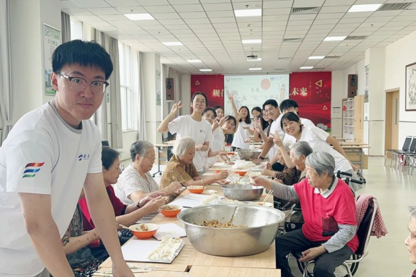 7月15日上午,同学们与老人们共同参与“今天,一起‘饺’个朋友”主题活动,通过健康科普、手工包饺子和温情陪伴,为医养中心的老人们带去欢声笑语,也让青年学子在实践中深化对老年护理的理解。