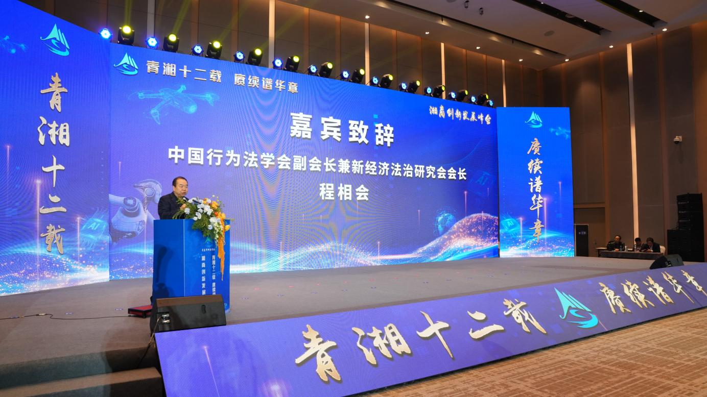湘商创新发展峰会由AI主持人“湘悦”精彩开场。湖南省政协副主席、省工商联主席张健发来视频寄语。湖南省人民政府驻上海办事处党组成员、副主任马宏平(主持工作),株洲市人民政府副市长、株洲市工商联主席杨胜跃,青岛市民营经济发展局党组书记杨超,青岛市工商联党组成员、副主席伦波,衡阳市委统战部副部长、市工商联党组书记雷继红,青岛市社会组织管理局相关领导等参会。中交协低空交通与经济专业委员会副会长兼秘书长李克澄、中国行为法学会副会长兼新经济法治研究会会长程相会等行业智库分别围绕法治化营商环境保障、“低空经济”等战略性新兴产业发展机遇进行了专业分享。