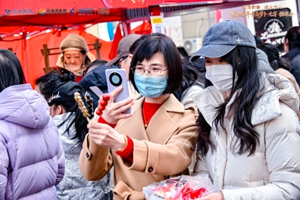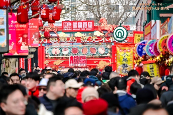 自糖球会启动以来,大鲍岛文化休闲街区的胶州路、海泊路、李村路、即墨路等核心区域全天人流如织,多个时段达到饱和状态。人均消费从2025年的7.9元提升至2026年的12元,市民游客从“逛一逛”转向“深度消费”,糖球、小吃、文创等品类全面热销。