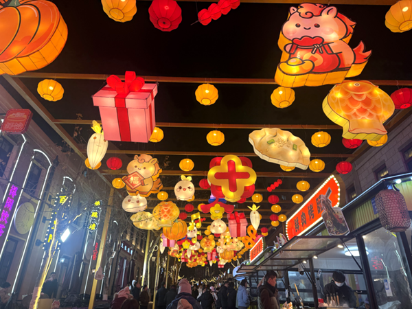 漫步街区,马年趣饰廊宛如一条梦幻光影通道,以马年元素、吉祥纹样、趣味标语为设计核心,串串花灯垂落如星河,灯带缠绕勾勒出灵动轮廓,行走其间,灯光斑驳洒落,年味与趣味扑面而来,成为亲子游玩、情侣漫步的热门打卡地,一步一景皆是新春喜气。