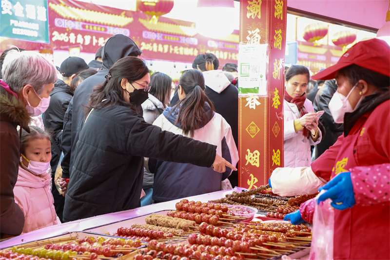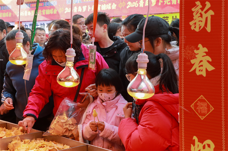 鲁网2月28日讯 2月28日,2026年全国“我们的节日·元宵”主题文化活动山东示范活动在青岛萝卜·元宵·糖球会海云庵会场举办。活动分为文化惠民演出、非遗手造展示、新春商贸市集等板块,将元宵佳节的团圆意蕴、齐鲁大地的人文底蕴与青岛百年民俗深度融合,用温暖烟火勾勒马年新春图景。(鲁网记者)
