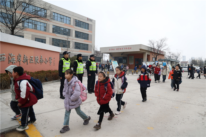 定岗定责,站好开学“第一岗”。开学期间,西海岸新区综合执法局调度各派驻中队严格落实“定人、定岗、定时、定责”保障机制,精准对接辖区各学校上学、放学高峰时段,科学调配执法力量,在校园周边重点路段、关键点位布控值守,通过采取定点值守与动态巡查相结合的方式,全面加强校园周边秩序管控,严查占道经营、违规摆摊设点、散发培训广告等影响安全通行和市容环境的行为,全力保障学生出行通道畅通无阻,用坚守与责任站好新学期校园守护“第一岗”。