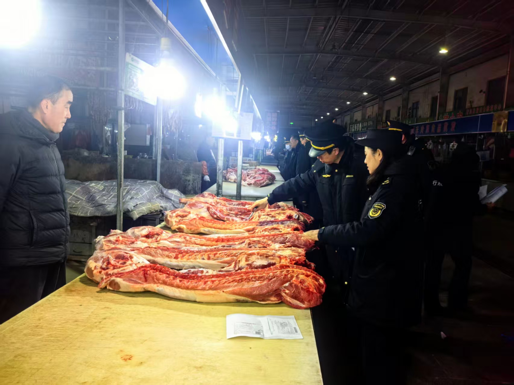 凌晨亮剑守安全 三部门联合开展肉类市场“3.14零点行动”