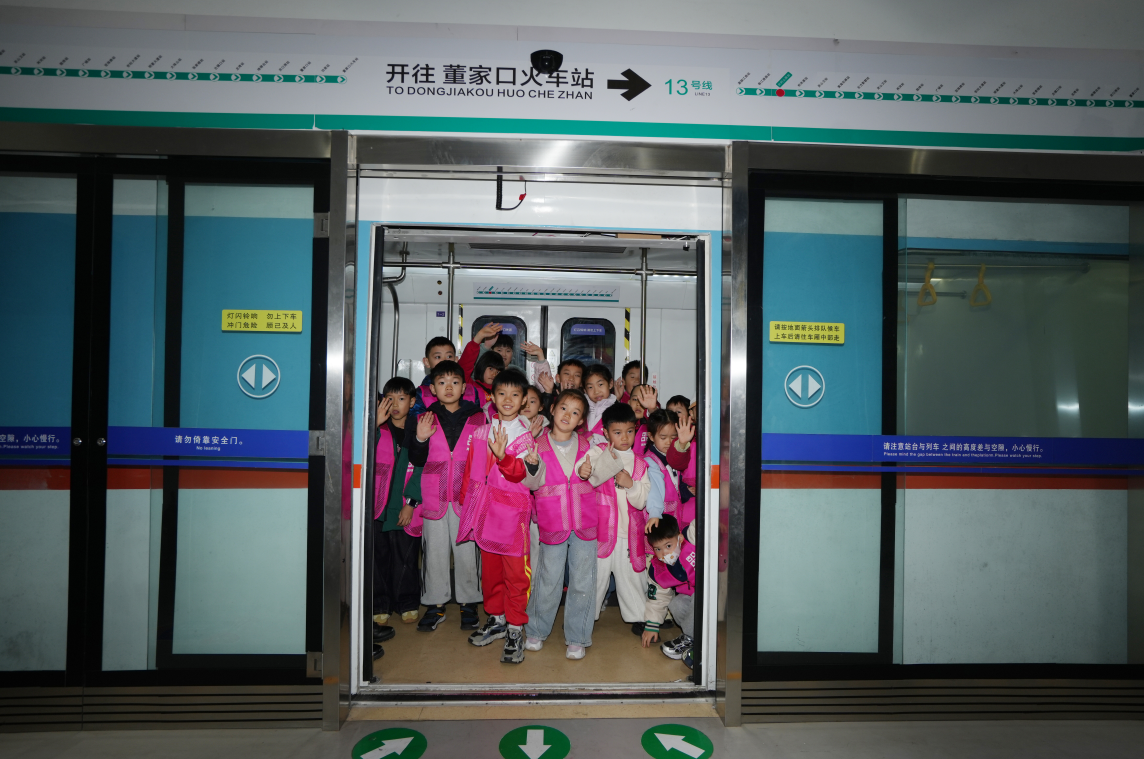 在交通安全体验区,中心通过场景搭建与实操体验相结合的方式,让学生以“第一视角”直面闯红灯、机动车视觉盲区、“开门杀”等日常出行中的潜在风险。此外,孩子们还走进仿真的地铁车厢,学习安全乘车规范,认识车内应急工具,并模拟在地铁火灾断电等突发状况下的紧急逃生过程。通过沉浸式实操体验,“守规则、平安上下学”的理念深植于每个孩子心中。