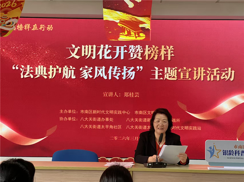 此次宣讲,是市南区“百人千场进万站”文明实践示范宣讲活动的生动缩影。近年来,市南区持续依托“道德榜样在行动”品牌,组织基层宣讲员、法律志愿者、文明带头人走进社区、走进群众,用身边人讲身边事,以身边事教身边人,让法治观念深入人心,让优良家风代代传扬,不断擦亮“德耀市南”文明底色,让文明新风吹遍城区每一个角落。(通讯员 林蒙蒙)
