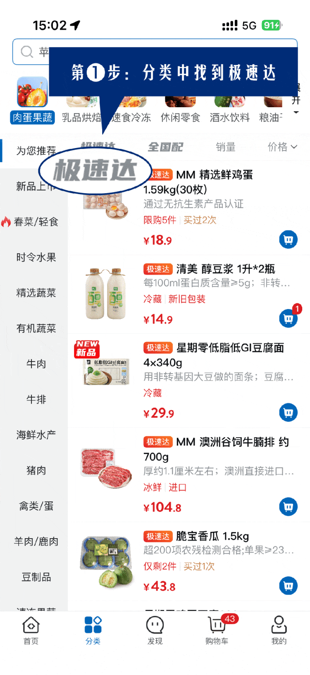 如商品有“极速达”标记