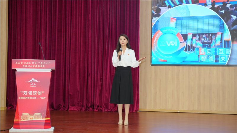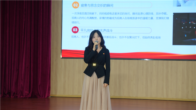 区商务局王洪倩以《招商追光者:点亮区域发展之光》为题,分享了党员干部带头实行专人负责制,创新资本、场景等招商模式,用“5+2”工作模式推动项目落地,2024年新引进过亿元项目数量实现突破,彰显了崂山党员干部在招商引资工作中“走在前、当排头”的创新突破。
