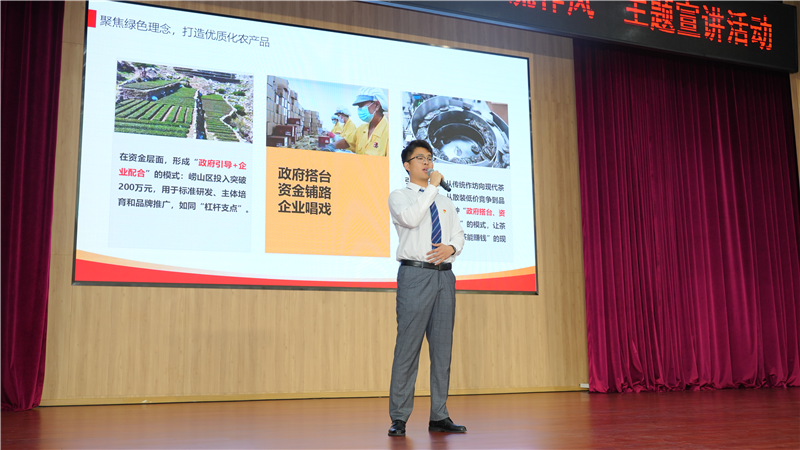 区农业农村局李尚宗带来的《“双领双创”赋能崂山茶发展密码》,深度解析“双领双创”行动推动崂山茶产业实现从传统种植到品牌化发展的跨越,通过党员干部“两无一有”即无事不扰、无处不在和有求必应的初心,使“崂山茶”成为崂山区的“金名片”,带动茶农增收,生动诠释了“党组织领衔 书记领办”下的乡村产业振兴的崂山路径。