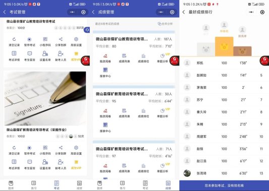 传统的考核方式主要是以纸质试卷闭卷考核为主,存在考题单一、考试人员时间错位、试卷批改统计复杂等问题。为提高培训工作质效,微山县应急管理局践行“树牢有解思维”理念,开拓思路,积极探索,联合微信小程序服务平台制作“教育培训专项考核”程序,分8个专业制作试卷,即:煤矿安全综合管理、煤矿安全检查、煤矿监测监控、煤矿提升作业、煤矿爆破作业、煤矿电气作业、煤矿采掘作业、非煤安全综合管理;将考试入口以二维码形式发送至各企业,分时段、全方位组织企业职工参加考试,考试成绩实时在小程序后台显示,既消除了线下批改统计的负担,又便于及时通知不合格人员进行补考。