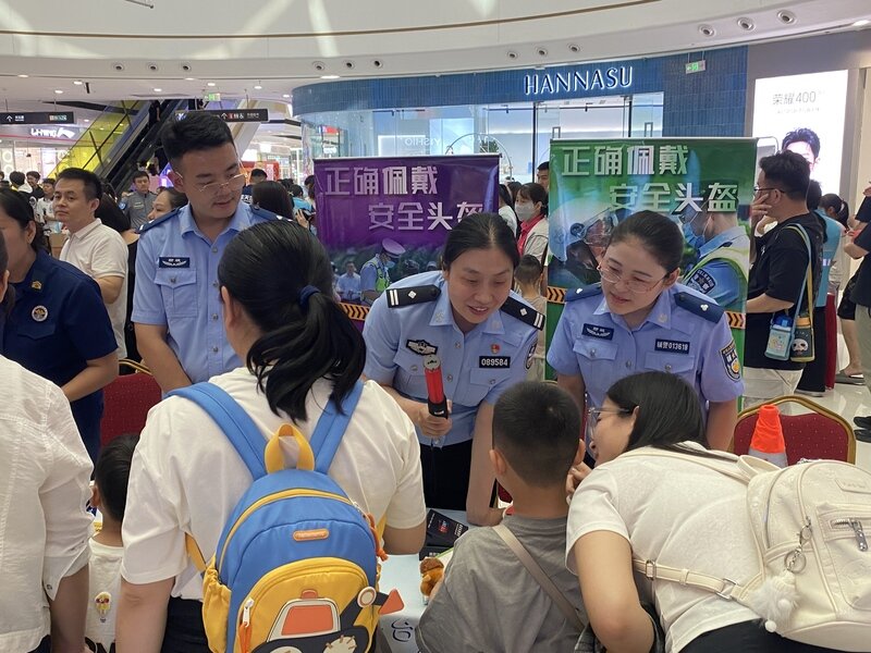 除了面向青少年的互动体验项目,大队还对现场的家长群体发放宣传资料,强调“一盔一带”的重要性,细致讲解酒驾、闯红灯、无证驾驶等一系列易造成交通事故的交通违法行为的危害性和严重后果,呼吁家长做好行为示范引导,同时号召同学们做“小小交通安全监督员”,提醒和监督家人出行时规范佩戴安全头盔,遵守交通安全规则。