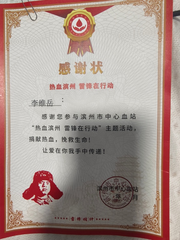工作之外的李维岳,更是一位充满爱心的公益人。他坚持献血18年,累计19次,总量5800ml,用热血为生命接力,还加入了中国造血干细胞捐献者资料库,用实际行动诠释着“奉献、友爱、互助、进步”的志愿精神。