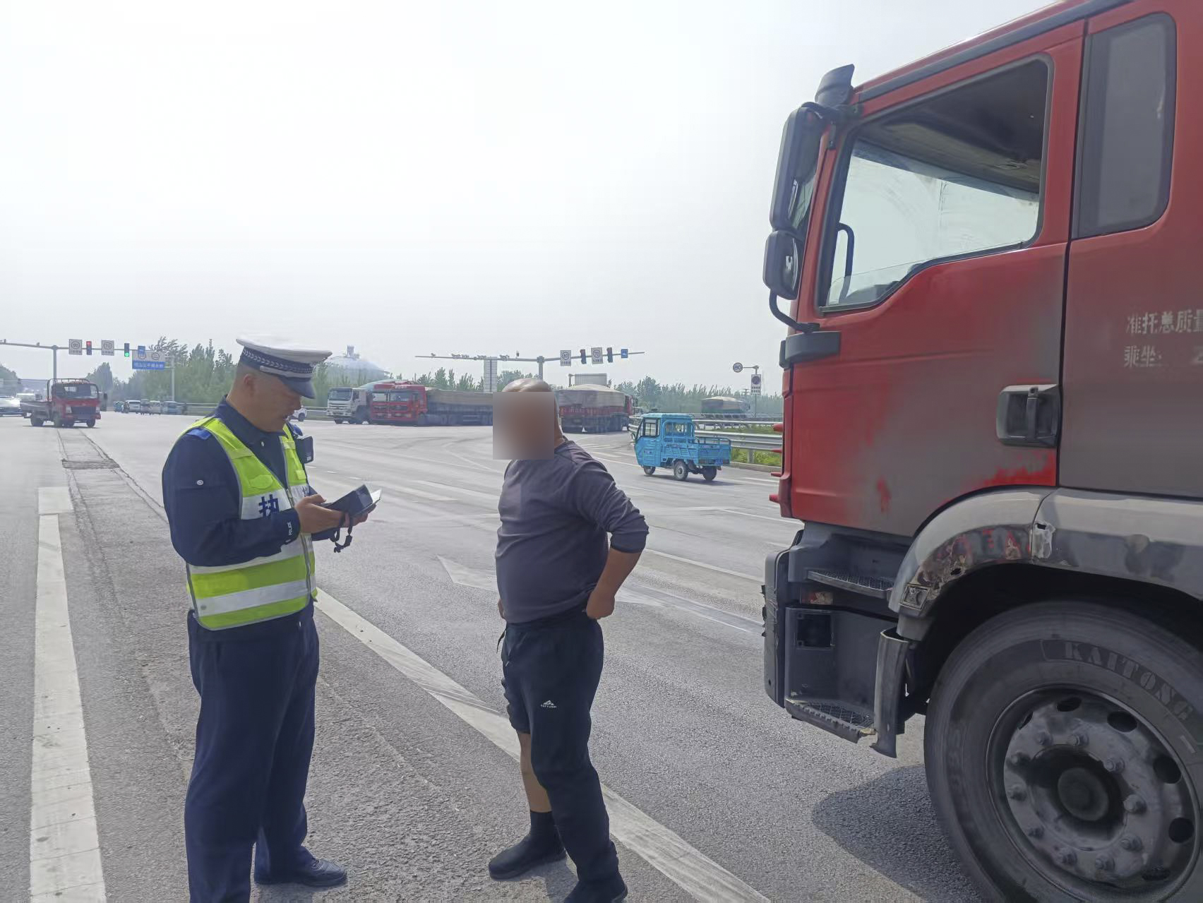 行动期间,大队领导带队,结合辖区货车通行规律与违法高发特点,在加强货车通行频率较高路段流动巡逻密度的同时,于重点路口、路段设立固定检查点,实现“精准布控、高效查处”。执勤人员对商砼车、渣土车、危化品运输车、重型半挂牵引车、中轻型普通货车等进行检查,重点整治货车超限超载、疲劳驾驶、违法载人、不按规定车道行驶等交通违法行为。