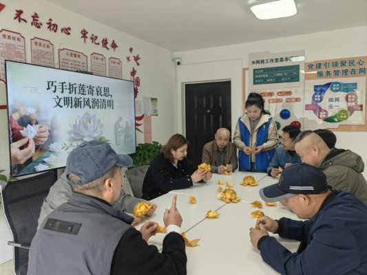 济宁市任城区阜桥街道红东社区开展“巧手折莲寄哀思 文明新风润清明”主题活动