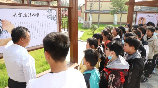 济宁市微山县微山岛镇纪委组织微山岛一中学生走进古留村家风家训馆开展“清廉家风进课堂”活动,将道法课堂搬到古留村家风家训馆。