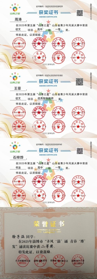 淄博市博山区实验中学青年学生在多项活动中获佳绩