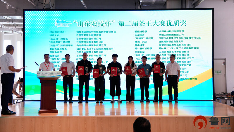 会上为山东省第二届茶王大赛金奖(日照6个)、优质奖(日照22个)等5个奖项的获奖代表颁奖。日照市岚山区等6个地市单位作了典型交流发言。