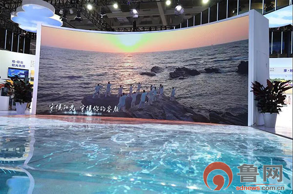 特别是展区通过运用声光电全息投影技术,将“蓝天、碧海、金沙滩”这一日照最美名片在43平米的LED 地屏上完美呈现。位于展区中部的弧形屏背面悬挂6幅高1.7米、宽0.93米的大型过门笺剪纸作品,艺术化呈现当地人文风情,引得参观者驻足拍照打卡。低空飞行体验机、海上划船机等设备让参观者尽享沉浸式完美体验,实现了现代创意与传统元素、推介展演与沉浸体验有机融合。