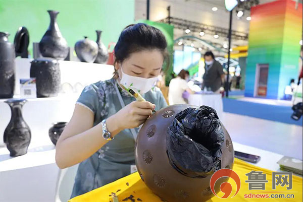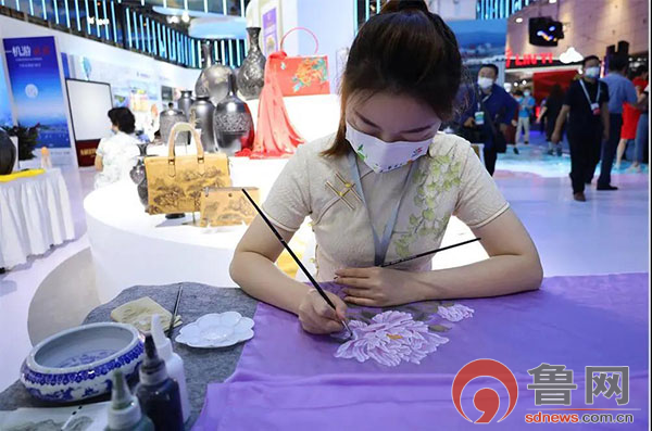 展销区陈列的日照绿茶、海鲜伴手礼、农民画绣、原创手绘、莒礼文创、蜂蜜衍生品、艾草制品、创意手工皂等日照特色文旅产品受到热捧。参观者可现场选购,也可通过“一机游日照”智慧文旅服务平台线上下单购买。黑陶、过门笺、皮影戏、烙画葫芦、老粗布、手工银壶等具有日照特色的国家级、省级非遗项目轮番展演,诉说着日照厚重的历史底蕴和文化积淀。歌舞《这就是日照》《海之秀》、坠琴演奏《夸山东》以及惊艳亮相的cosplay秀则向人们展示了日照的时尚活力、包容开放。另外,日照展区还邀请了网红达人直播博览会盛况,线上宣传推介日照城市形象、旅游资源、特色产品。在展区显著位置,摆放有日照旅游宣传手册、文旅产业项目招商手册,可供阅读领取。