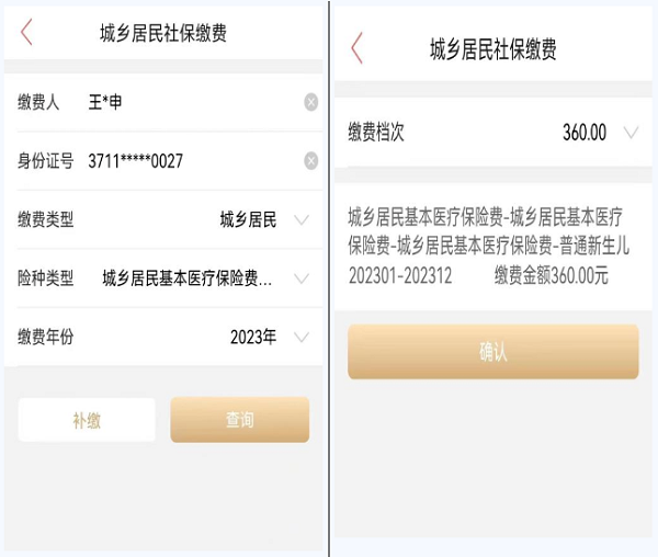 第三步,险种类型选择“城乡居民基本医疗保险费”,缴费年份选择当前年份(不支持补缴),点击“查询”,需确认缴费的类型和金额,核对无误后点击“确认”;