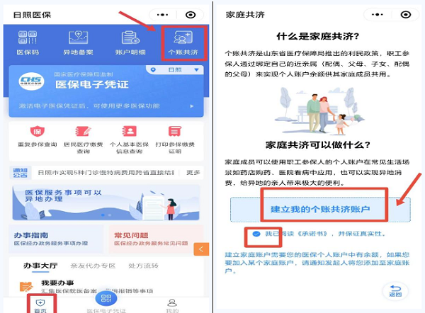 可以通过“日照医保”微信或支付宝小程序,也可以通过“日照医疗保障”微信公众号申请设立、变更、取消个账共济。持日照银行社保卡的参保职工需先将本人的医保个人账户绑定至“日照银行”APP。