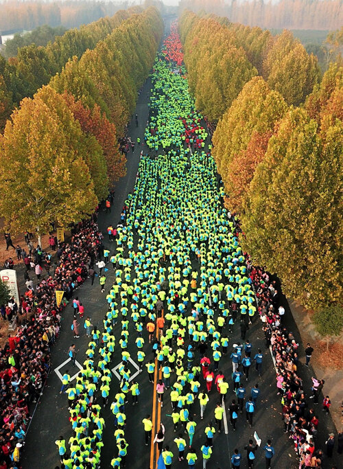 2018年黄河生态马拉松引来万名跑友 记者 周里 摄