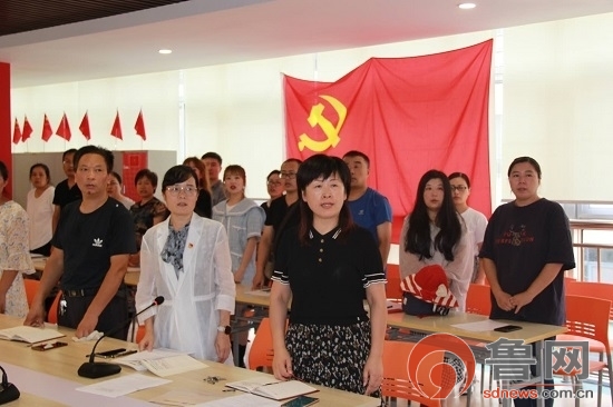 主题党日活动在全体党员振奋人心的《国歌》合唱声中拉开帷幕,全体党员举起右拳,重温入党誓词,诵读学习《中国共产党章程》第五条,学习了关于发展党员的有关要求。