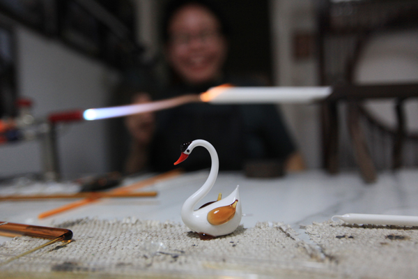 短短几分钟,邹爱云便做出了一只“琉璃小天鹅”