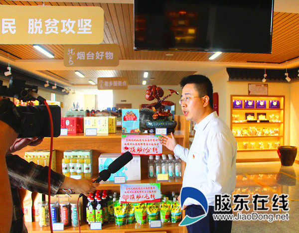 龙泉镇党建办副主任滕沛沂向主持人介绍龙之泉农产品