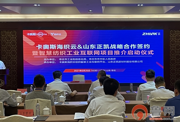 鲁网5月26日讯(记者 杜方奇)2021年5月25日,卡奥斯海织云纺织服装工业互联网平台与山东正凯新材料股份有限公司战略合作签约暨智慧纺织工业互联网项目启动仪式在枣庄开元凤鸣山庄举行。
