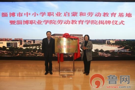 鲁网10月28日讯(记者 陈珊珊 通讯员 张晗 魏伟 付磊)10月27日上午,淄博市中小学职业启蒙和劳动教育基地暨淄博职业学院劳动教育学院揭牌仪式在淄博职业学院立德楼报告厅举行。苏州职业大学劳动与职业教育研究所所长傅小芳,淄博市教育局党组成员、市教研室党总支书记李铮声,山东众乐教育科技有限公司董事长解佰川,专家委员会主任解典,淄博职业学院党委书记张爱民,党委副书记、校长杨百梅等出席此次活动。