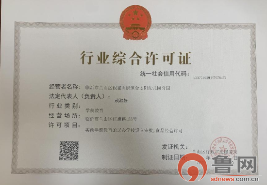 鲁网2月9日讯 2月9日,临沂市兰山区行政审批服务局为临沂市一普惠性幼儿园办理了学前教育类别的行业综合许可证。