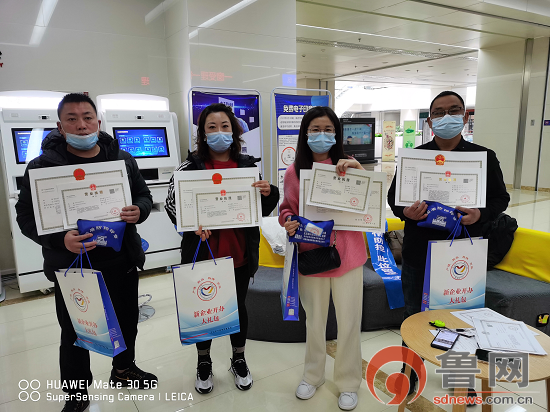 鲁网2月18日讯 2月16日上午,同住兰山北城且均要从事物流行业的四位群众,一起到临沂市政务大厅新企业开办专区咨询如何成立物流方面的公司。得知需求之后,工作人员逐一解答他们心中困惑,一对一指导业务设立发起,协调后台审核,现场打照、刻章、申领电子营业执照,全流程帮办、代办,不足2个小时,四位群众就领取到营业执照。他们感谢道:“离家近,又少跑腿,审批服务真热情!”