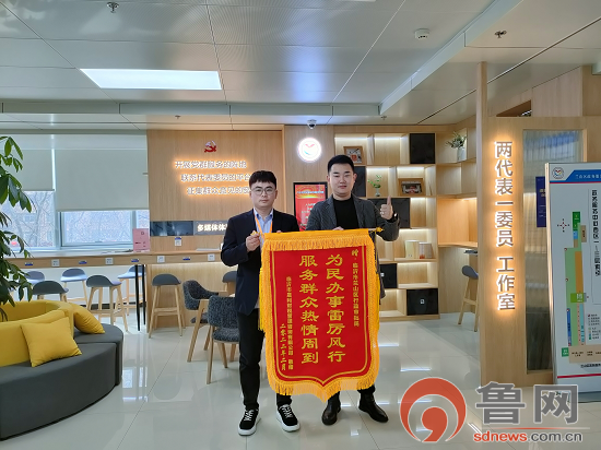 鲁网2月18日讯 2月17日下午,临沂晟利财税管理咨询有限公司杜先生将一面印有“为民办事雷厉风行 服务群众热情周到”的锦旗送到兰山区行政审批服务局三楼新企业开办专区,表达对审批局工作人员热情高效服务的感谢。
