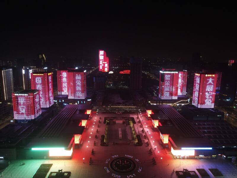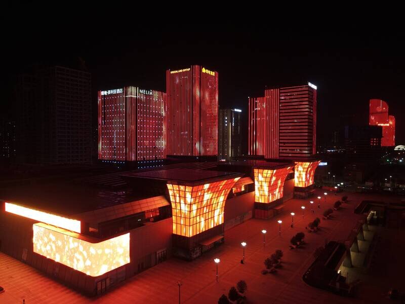 星流电掣须臾间。夜幕降临,济南西站霓虹闪烁,灯火阑珊,点亮了泉城的西大门。多层次、立体化的夜景亮化效果,既凸显了现代文明气息,又营造出春节温馨祥和的氛围,“大展宏兔”、“前兔似锦”的字样,呈现出一派喜气洋洋过大年的景象,让南来北往的旅客心情更舒畅,更有回家的感觉。