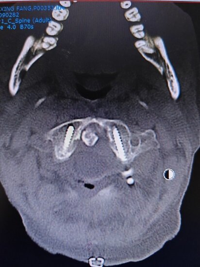 “高位颈椎手术存在一定的风险和挑战,而类风湿性关节炎造成颈椎正常解剖结构的消失更是增加了手术难度。”孟凡志介绍。最终,团队为患者确定了“颈后路寰枢椎脱位复位术+钉棒系统内固定+后外侧植融合术”的手术方案。以通过将寰枢椎复位固定,达到恢复颈椎稳定性的效果。