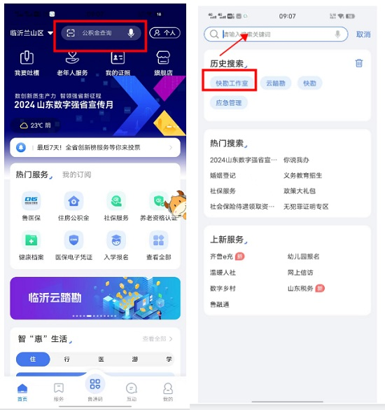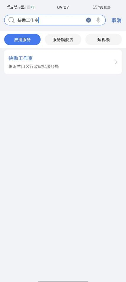 1.在爱山东“首页”选择“临沂兰山”,点击搜索“快勘工作室”