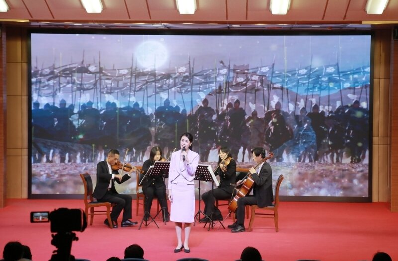 随后,弦乐四重奏组与朗诵团队的合作令人陶醉。情景朗诵《我记得那美妙的一瞬间》搭配《爱的礼赞》,实现美妙人声与乐声的完美融合;莫扎特的《G大调弦乐小夜曲》如月光洒心田,曲风柔美;《蓝色多瑙河圆舞曲》律动鲜明;《匈牙利舞曲第五号》活力四溢。而刚刚过去的2024年正值新中国成立75周年,诗朗诵《月光下的中国》在《我爱你,中国》的配乐下,深情表达对祖国的热爱。最后,音乐会在《花好月圆》的优美旋律中圆满落幕。