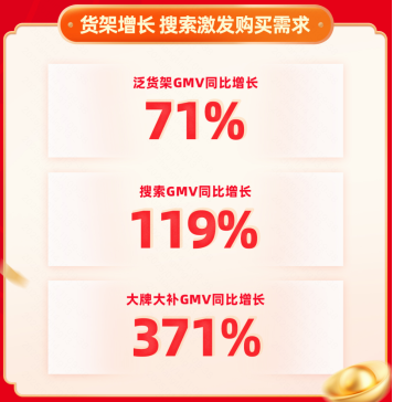 数据显示,快手年货节期间,泛货架GMV同比增长71%,搜索GMV同比增长119%,大牌大补GMV同比增长371%。