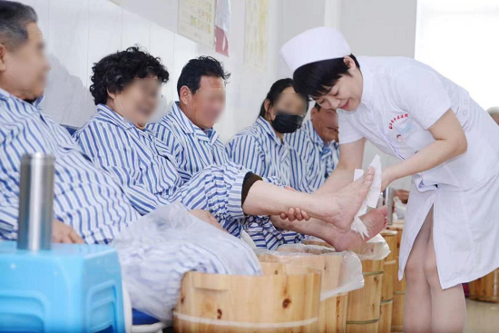 除了中药内服和针灸治疗,田象菊还掌握许多中医特色治疗的“法宝”。每天清晨,都有护士带领患者做八段锦,之后还会为患者进行耳穴压豆、中药局部熏洗、中药热敷、磁热疗(胃腹部)、穴位中药贴敷、中医定向透药等中医护理治疗。“我们科室自研的糖痛方、糖润方,在应对糖尿病并发症,尤其是改善糖尿病患者下肢的凉、麻、痛等症状,发挥着良好作用。”田象菊介绍道。
