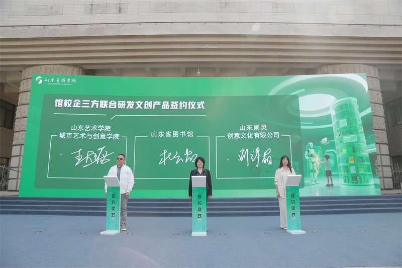 启动仪式上,山东省图书馆与山东艺术学院城市艺术与创意学院、山东则灵创意文化有限公司签署了馆校企三方文创开发协议。通过构建馆校企合作模式,探索整合各方资源、实现资源优化配置,开发兼具文化底蕴、创意特色和市场价值的鲁图文创精品。
