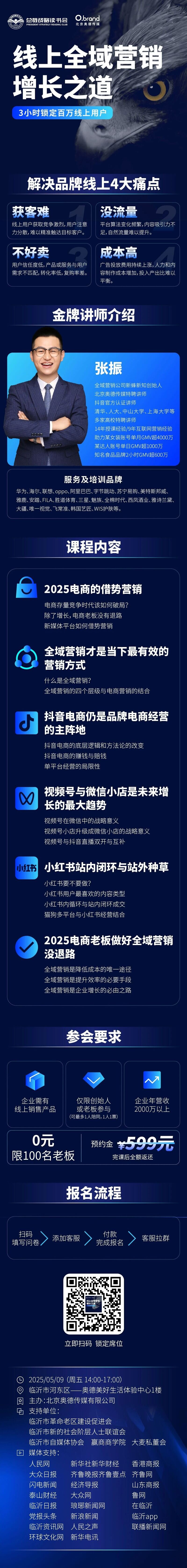 此番针对数字化时代,电商行业竞争日益激烈、全域营销成为企业突破增长瓶颈的现状,特邀金牌讲师张振老师结合14年授课经验和9年互联网营销实战心得,直击当下电商与全域营销的核心痛点,助力企业整合多平台资源,实现全方位触达客户,抢占市场份额,为企业提供可落地的增长方案。