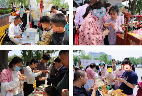 指尖承古艺,童心悟匠心。穿过费县民艺展示体验中心,孩子们的目光被拓印、扎染、泥塑等民间艺术品深深吸引。他们兴奋地奔向非遗体验摊位。糖画摊位前,魏氏糖画第五代传承人魏生国老师,一边用糖汁勾勒花鸟,一边讲述这门手艺如何从街头走向世界;沂蒙面塑摊前,孩子们跟着老师或捏或搓,做出来的玫瑰花栩栩如生;编绳桌上,志愿者灵巧地将五彩绳打结,系在孩子们的手腕上……被非遗吸引的孩子们认真模仿,指尖生疏但却满脸认真。当非遗传承人布满老茧的手与孩子们稚嫩的手相握,传统技艺在这跨越时光的触碰中,完成了一次温暖的传承,文化的火种在孩子们心中悄然点亮。