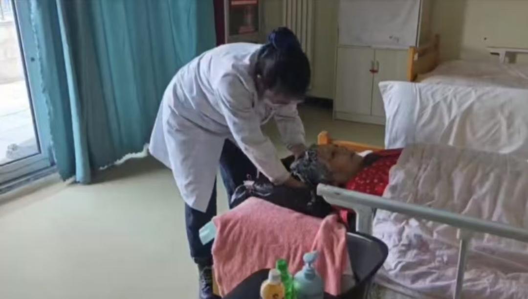 赵亚欣照顾老人洗头发。