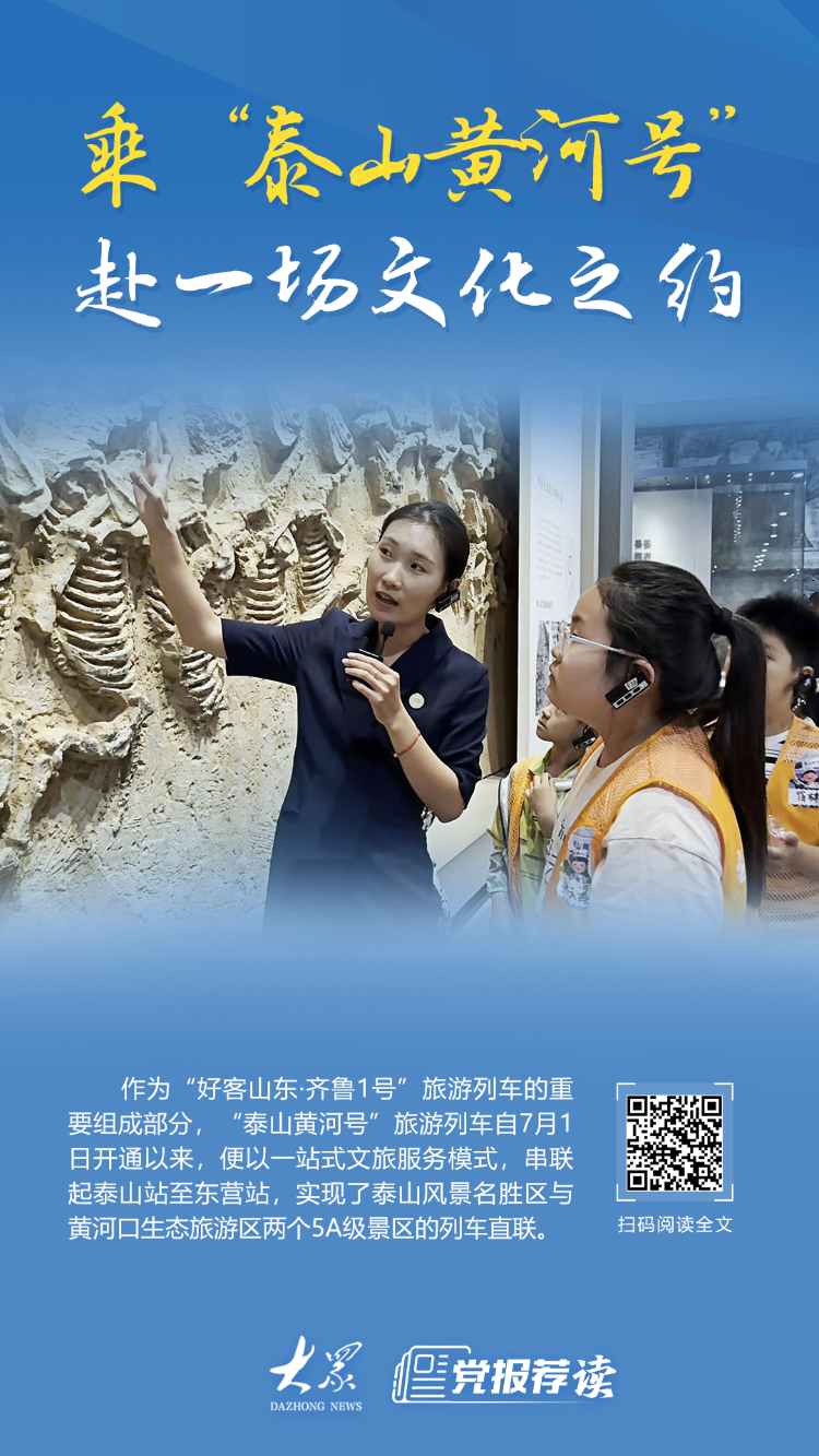 作为“好客山东·齐鲁1号”旅游列车的重要组成部分,“泰山黄河号”旅游列车自7月1日开通以来,便以一站式文旅服务模式,串联起泰山站至东营站,实现了泰山风景名胜区与黄河口生态旅游区两个5A级景区的列车直联。