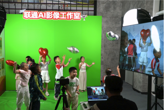 联通AI影像工作室更是凭借直观的趣味性与互动性,成为亲子家庭的“必争之地”。忽而江南渔火,忽而桃花春风,忽而水墨乾坤,小小的绿布仿佛拥有魔法,为众多家庭变换时空舞台背景。家长在孩子们的感染下,走上绿幕,直观感受AI技术打造的奇幻场景,留下一个个温馨的亲子瞬间。