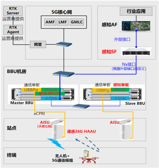 本次建设严格依照标准通感架构进行部署,充分发挥中国联通自研AF低空智联共享平台优势。该平台不仅能够与外部数据应用方实现高效对接,还可根据任务需求实时下发感知指令,提供全方位感知数据信息服务。在核心网侧,项目采用一体化SF平台,实现感知能力统一订阅、任务集中管理和数据高效处理上报,确保感知数据的可靠性与可控性;在无线侧,依托毫米波AAU强大的感知能力,可在300米高度范围内精准识别无人机位置、速度和轨迹,实现对低空飞行目标的全方位监测。