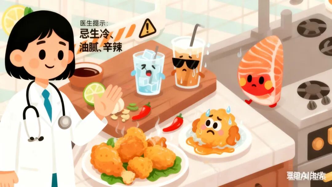 规避禁忌:忌生冷(如冰饮、刺身)、油腻(如油炸食品)、辛辣刺激食物,防止损伤脾胃,导致腹胀、腹泻等问题。