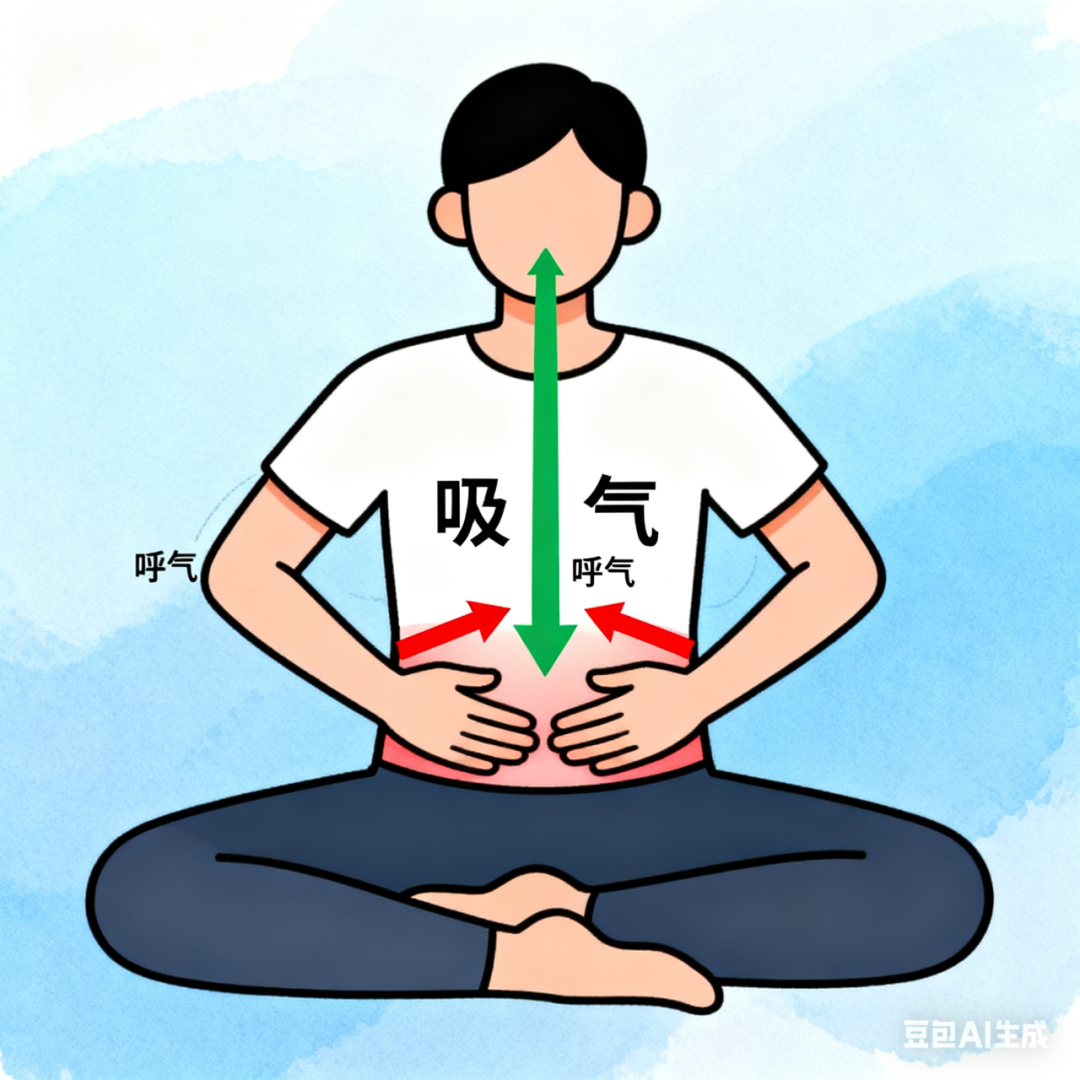 用鼻子慢慢深吸气,感受肚子鼓起来(放在肚子上的手会被顶起),胸口尽量不动;