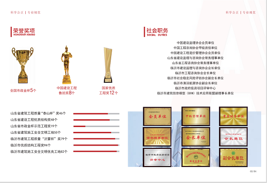 三十余年来,公司始终深耕建筑领域,业务遍及全国15个省份、48个地市,取得了令人瞩目的业绩,赢得了广大业主的深度信赖。公司参与监理的项目屡获殊荣,其中包括中国建设工程鲁班奖8个、国家优质工程奖12个、全国市政金杯5个、山东省建筑工程质量“泰山杯”奖50余项。作为临沂市建设监理与咨询协会会长单位,公司积极发挥行业引领作用,持续推动区域建设行业的高质量发展。