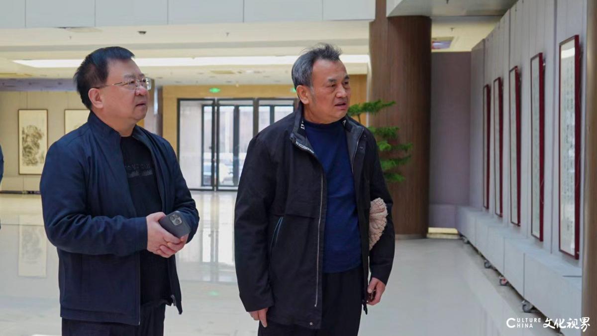 鲁网12月29日讯 冬月的济南文脉涌动,12月19日启幕于济南市历城区美术馆的“盛洪义书画篆刻展”正持续升温。这场集结70余件精品力作的艺术盛宴,涵盖山水、人物、书法、篆刻四大品类,将持续至2026年1月7日,为泉城艺术爱好者奉上一道跨年度的文化大餐。近日,山东画院书记、副院长樊磊,山东艺术学院教授王谦,山东青年政治学院设计艺术学院教授李洪贞,历城区美术馆馆长沈鸿欣等艺术家以及文化视界网&中华网山东频道总编辑梁洪文、中国网·新山东负责人赵新明等媒体界嘉宾探访展览现场,与观众共赏笔墨风华,畅谈艺术传承。
